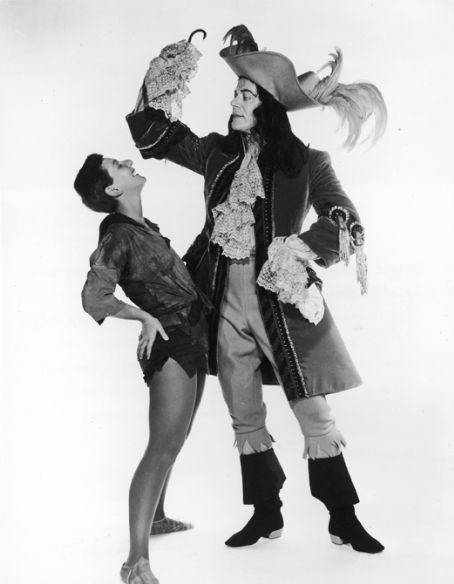 Was ever a villain so beloved as Cyril Ritchard's CAPTAIN HOOK? How slender and elegant he looked in his scarlet pirate coat, with ruffles at the throat and wrists; jeweled rings on his left hand (the right with that wicked hook). Who else could dance so gracefully in those tight pants and be so light on his feet in those high topped boots? "No little children love me," Hook laments during HOOK'S WALTZ on the pirate ship; how wrong he was!
